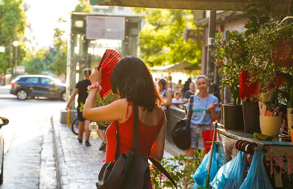 当地时间2023年7月11日,希腊雅典,一名女子手持扇子。希腊预计将迎来47摄氏度的热浪。