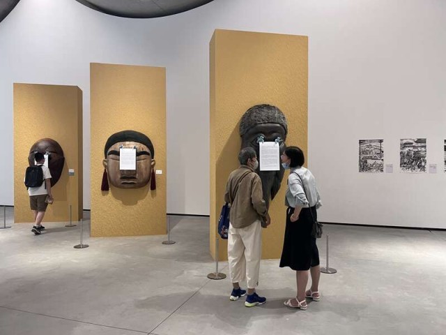 正在798进行的“白洞:甲骨文的奥秘与当代表意”展览吸引众多观众。实习生王可意/摄。