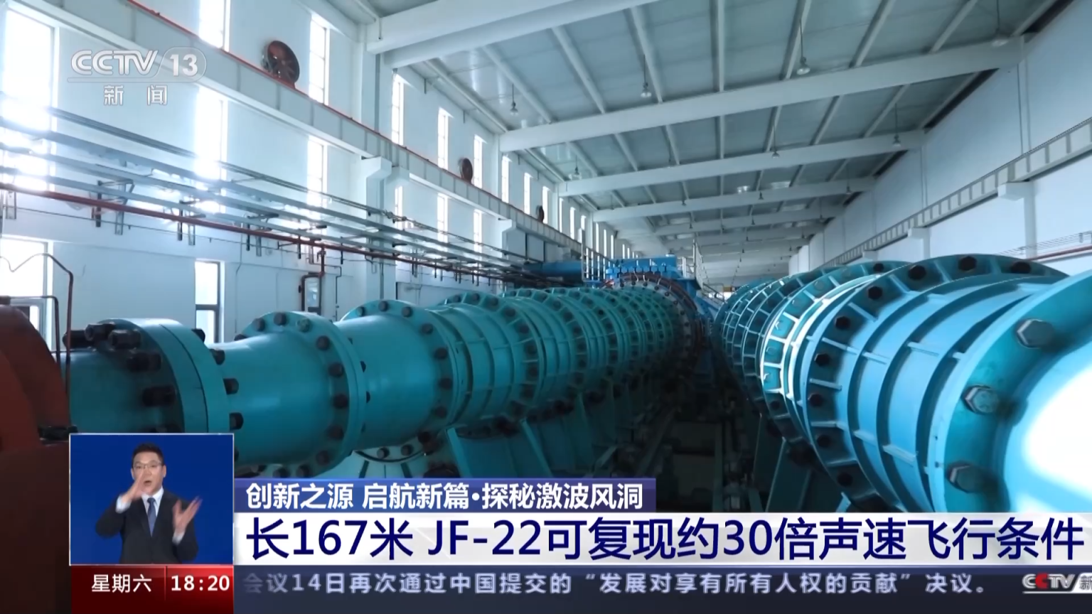 总台央视记者帅俊全:这里是空天飞行高温气动全国重点实验室,在我身旁就是刚刚通过验收的JF-22超高速激波风洞,它的全长达到了167米,其各项性能指标可以说是国际领先,也为我们国家的空天往返系统以及超高声速飞行器研制提供了有力支撑。