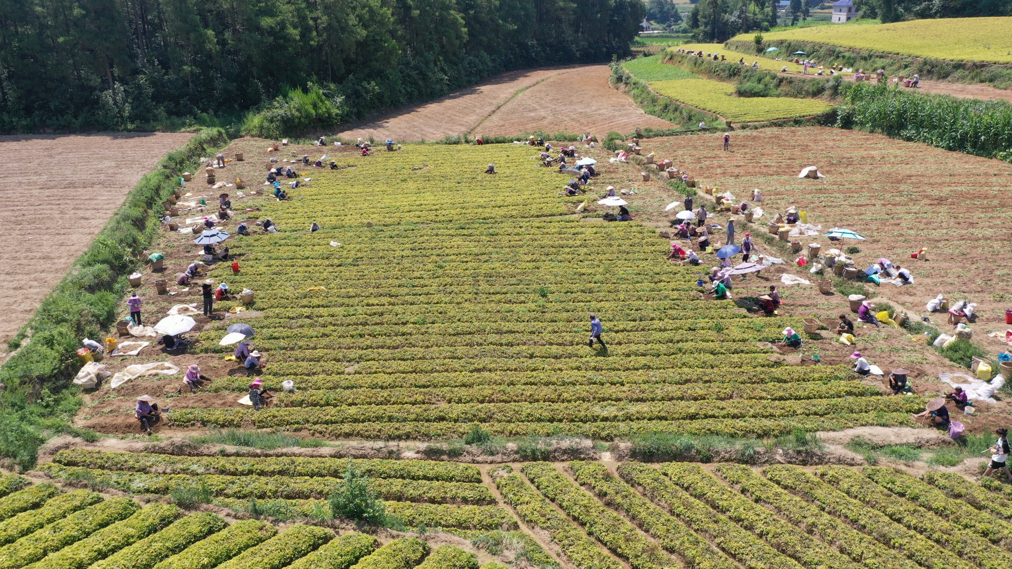 田间地头随处可见挖参的群众(瓮安县融媒体中心供图)