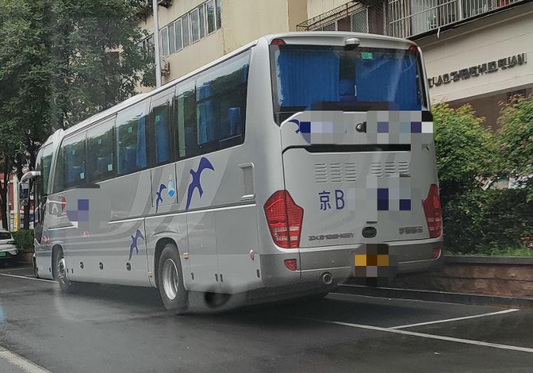 位于二环内的东四西大街南北两侧,都有路侧停车位,这里的停车公示牌上明确写着“禁止大客车占用小客车停车位”。旅游大巴集中在路北侧停放,有的一辆大巴占三个小车位,有的干脆停在非机动车道的空地上。沿着东四北大街向西走,一路上大概停了六七辆京B牌照的旅游大巴。另外还有几辆京B牌照的小巴和中巴。它们车身上多数都印着“XX旅游公司”的字样。
