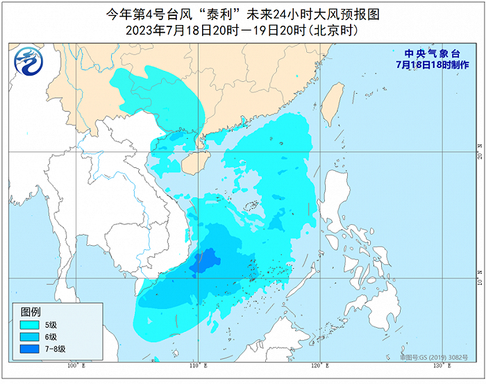 大风预报:7月18日20时至19日20时,北部湾大部、南海大部、西沙群岛、中沙群岛及黄岩岛附近海面、南沙群岛以及广东南部沿海、广西沿海及广西中西部、云南东部、贵州南部等地将有5-6级风、阵风7-8级,其中,南海西南部部分海域将有7-8级大风、阵风9级。