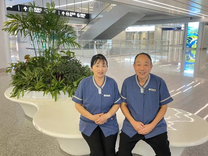 保洁老张和常大姐夫妇,他们曾经是杭州西站的建设者,现在又为西站24小时工作。