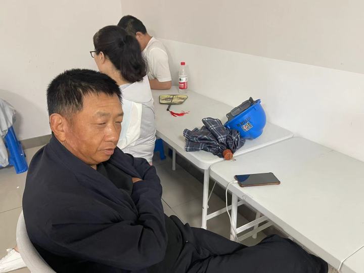 老董没带什么行李,只有一把伞和一顶蓝色安全帽,上面印着“XX建设”。