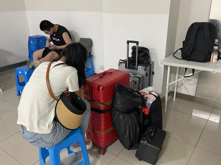 准备回山东济宁的小陈姑娘的行李最多,除了一只大红色的28号箱子还有大包小包五六个。我凑上去的时候,她的手机上正显示着美甲美睫行业的信息,她说,在杭州几年,本来是开洗车店的,疫情结束后房东把铺面收回了,她左思右想,还想留在杭州,于是找了个培训学校,正在当学徒。
