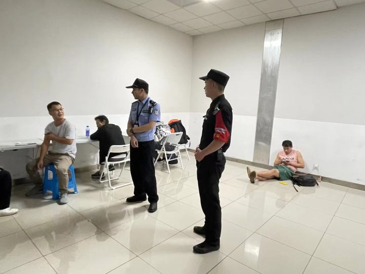 在民警的带领下,我们一起走到了过夜旅客的临时休息室,里面的座位已经三分之二有主了。有的旅客趴在桌子上打盹,玩手机的旅客有的看小视频、有的在打牌、有的还在谈工作。