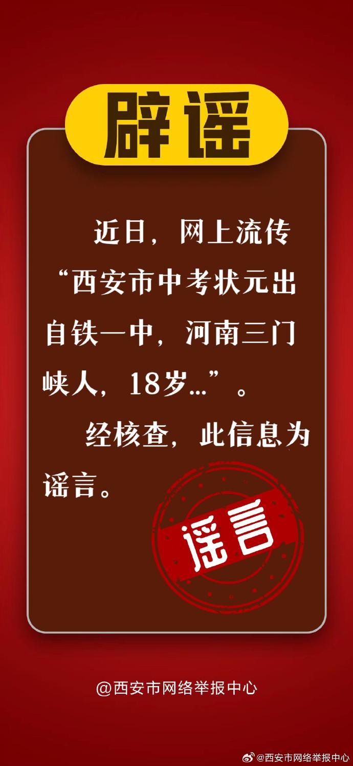 网传“西安中考状元18岁”?官方辟谣:谣言