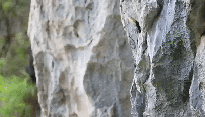 7月21日,在崇左大新县的恩城国家级自然保护区,国家一级保护动物冠斑犀鸟1只雏鸟从崖洞巢穴里破巢而出。