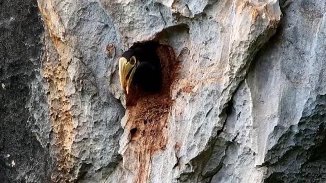 2019年起,这对冠斑犀鸟已经在同一个崖洞里繁育出5窝雏鸟。