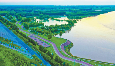 夏日傍晚,在河南省郑州市惠济区黄河大堤南侧的大河路街道前刘村,宽敞平整的景观步道上游人如织,两旁的绿植郁郁葱葱。“这里环境美,节假日带着孩子来逛一逛,欣赏下美景。”市民尹继业说,和家人围坐在绿荫下,一边饮茶一边聊天,感觉非常惬意。自然生态的氛围、舒适怡然的空间,让黄河生态廊道吸引了越来越多市民来到这里欣赏黄河、亲近黄河。