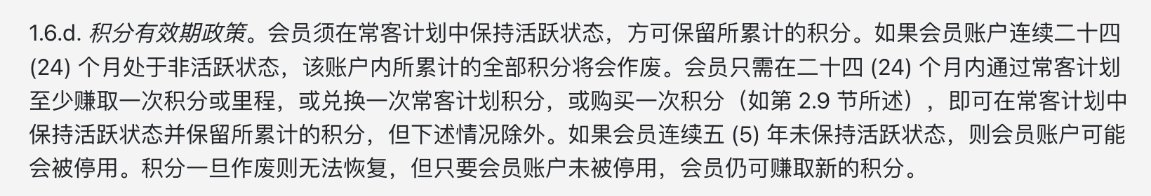 万豪《常客计划细则及条款》中对于有效期的规定。
