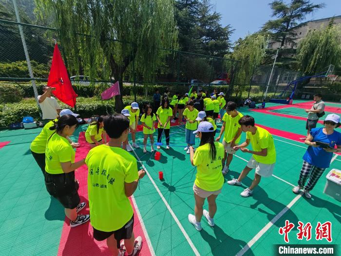 7月25日,山西运城,海外华裔青少年正在进行拓展训练。 赵玉涵摄