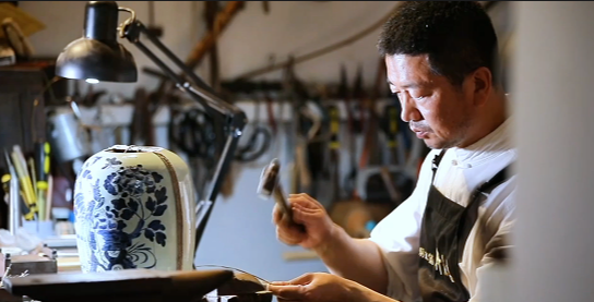 他们会根据裂纹的走向,用金、银、铜等锔钉锔出与瓷器相应的图案,让破碎的瓷器重获新生。耿海胜的父亲经历过锔瓷慢慢淡出大众视野的年代,他选择守住这门古老的手艺,并传承给了耿海胜。