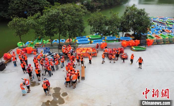 图为市民游客正在准备登船漂流。姚伦毅摄