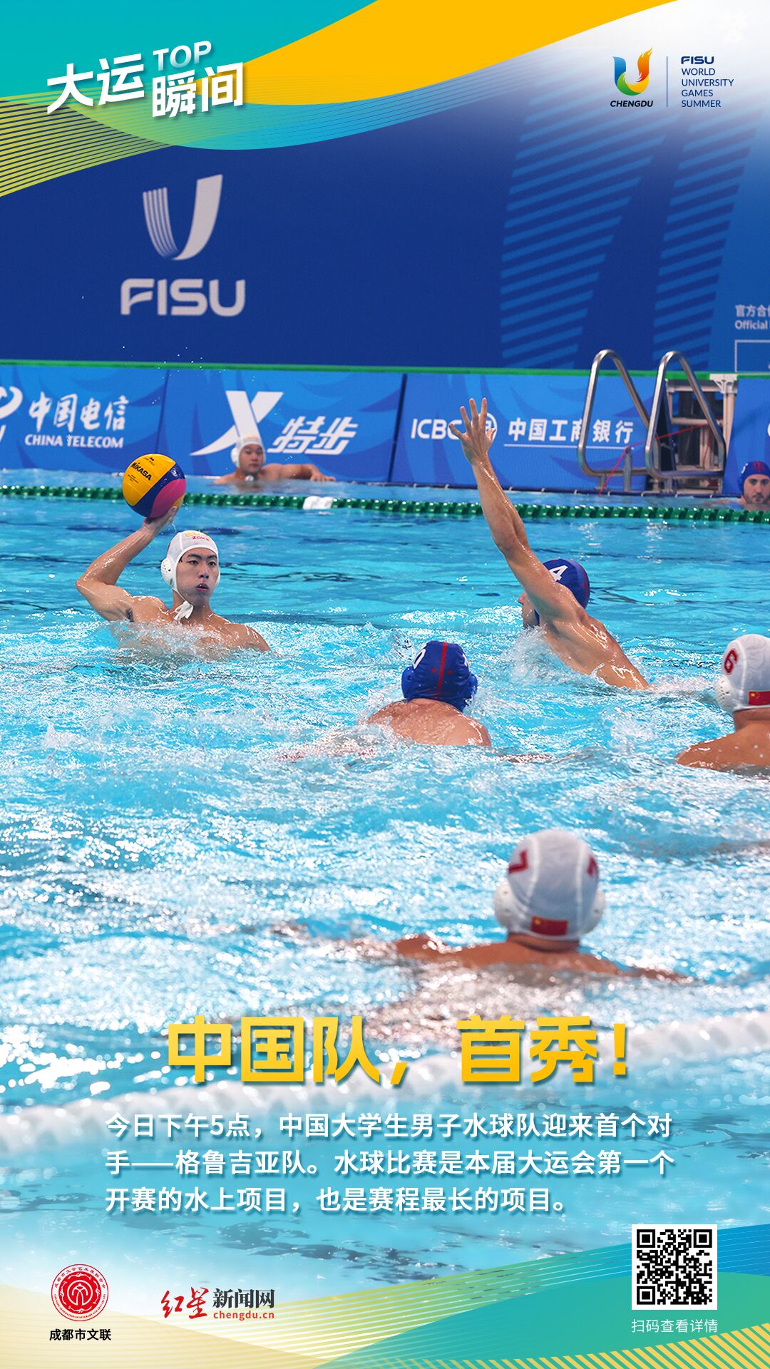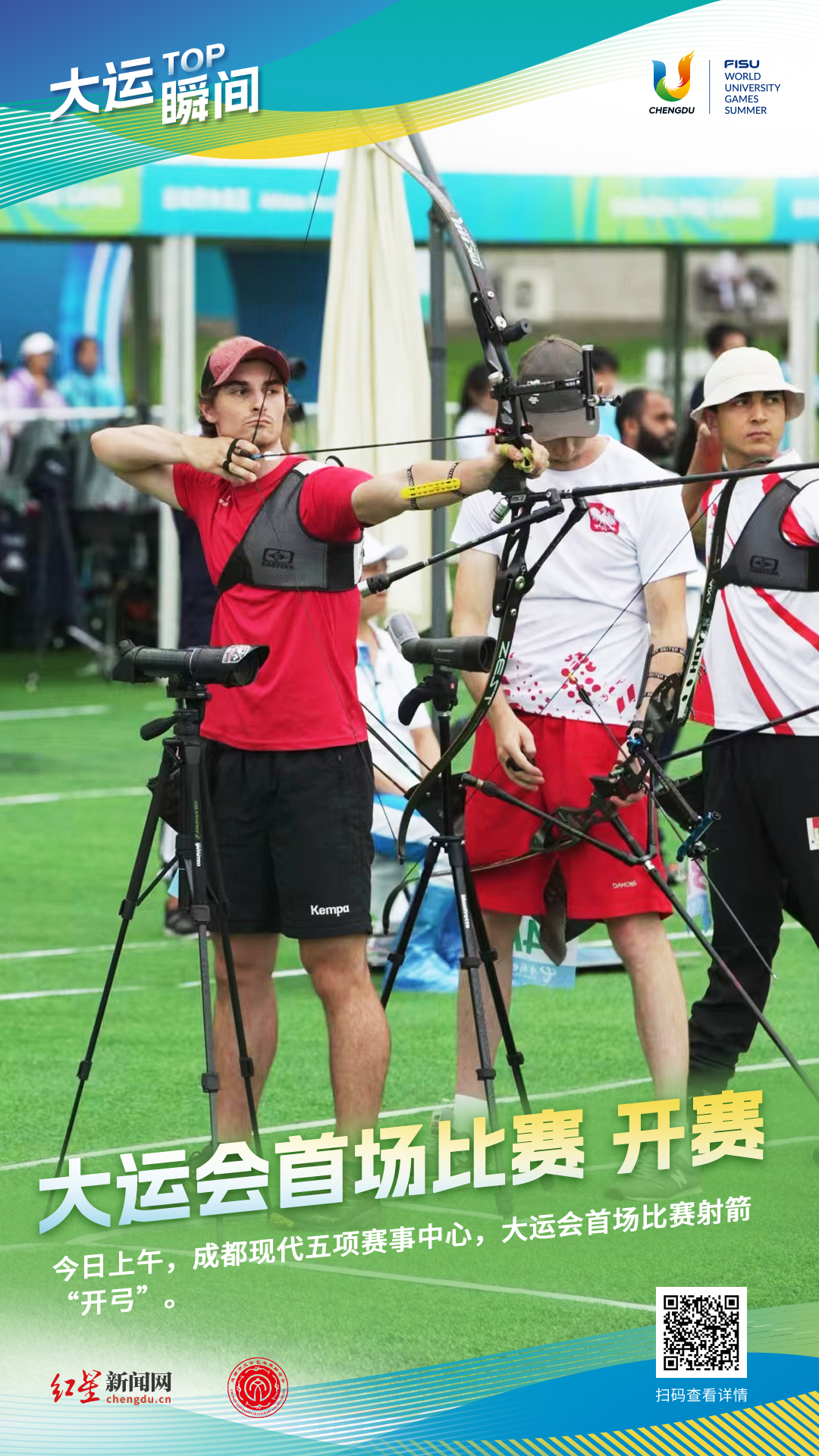 今日,成都大运会射箭和水球项目率先开赛。在射箭项目女子反曲弓团体半决赛中,中国队以5比4战胜印度队,晋级决赛。在男子水球项目比赛中,中国队的对手是格鲁吉亚队,最终经过4节比赛鏖战,中国队7∶13不敌格鲁吉亚,未能取得开门红。