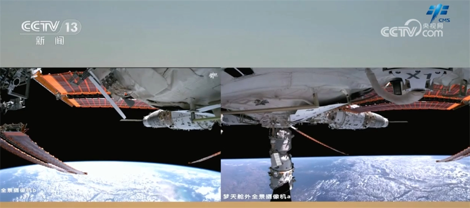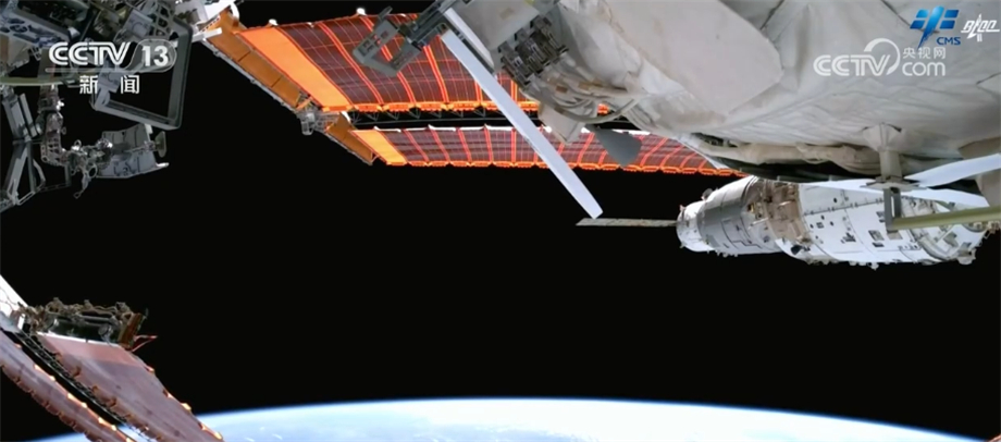 央视网消息:今天(7月28日),中国载人航天公众号发布了一段来自中国空间站的新视频,展示了多机位视角下,全景相机抬升后的中国空间站与地球同框的精彩画面。