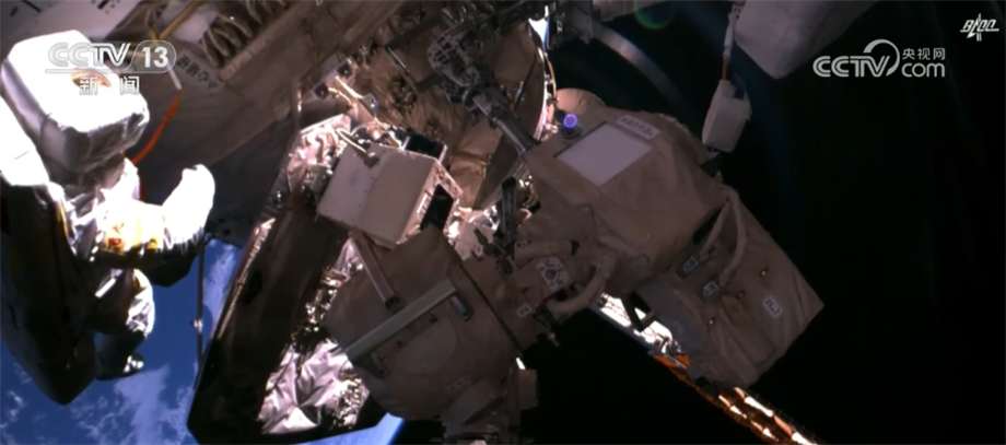 7月20日,神舟十六号航天员景海鹏、朱杨柱、桂海潮密切协同,在空间站机械臂支持下,圆满完成出舱活动。出舱期间,完成了核心舱全景相机B在轨支架安装及抬升、梦天舱全景相机A和B解锁及抬升等任务,我们现在看到的就是相机抬升后所拍到的画面。