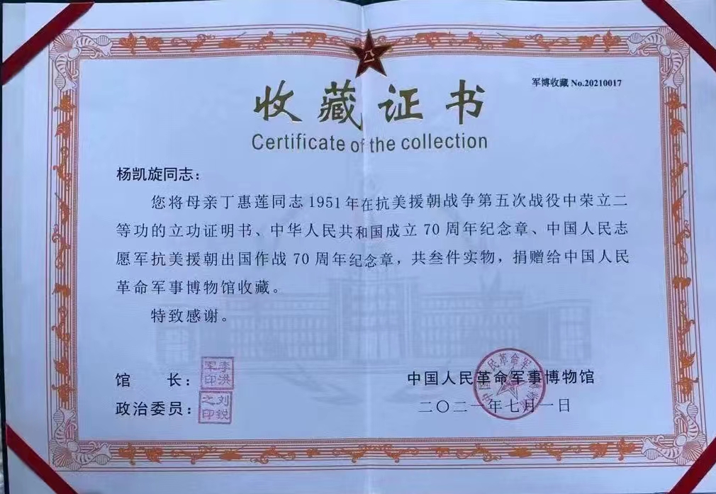 抗美援朝战争结束后,丁惠年荣立二等功。
