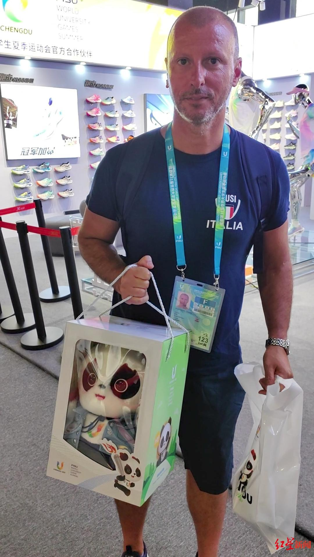 意大利游泳教练帕内托尼展示“蓉宝”