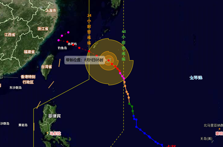 预计,“卡努”将以每小时20公里左右的速度向西北方向移动,强度还将有所增强,并向琉球群岛南部海域靠近,8月2日上午移入东海,然后逐渐向浙江中部至福建北部一带沿海靠近。