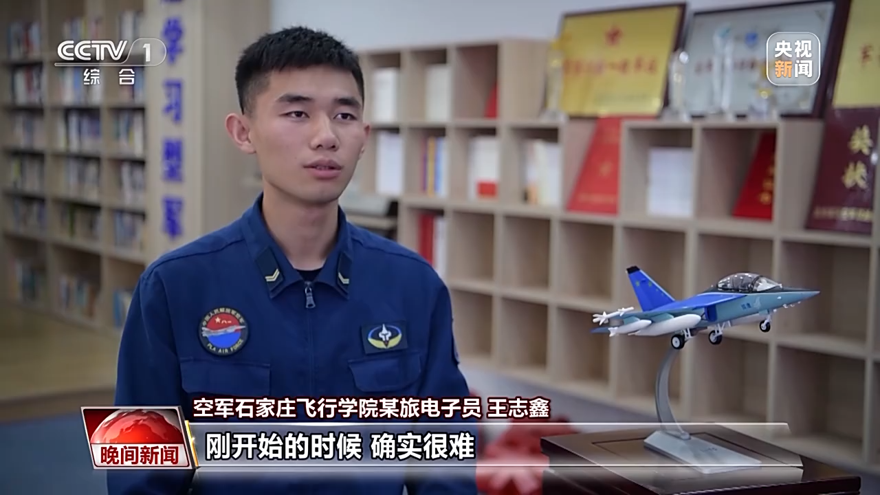 空军石家庄飞行学院某旅电子员 王志鑫:刚开始的时候,确实很难,看教材就感觉像看“天书”一样,没办法,只能熬夜加班学习,一遍遍向师傅们请教,没事就往机场跑,围着飞机“转圈圈”,各个部件挨个看挨个认。现在想想,知识真的很重要,还得提高自己的学历。