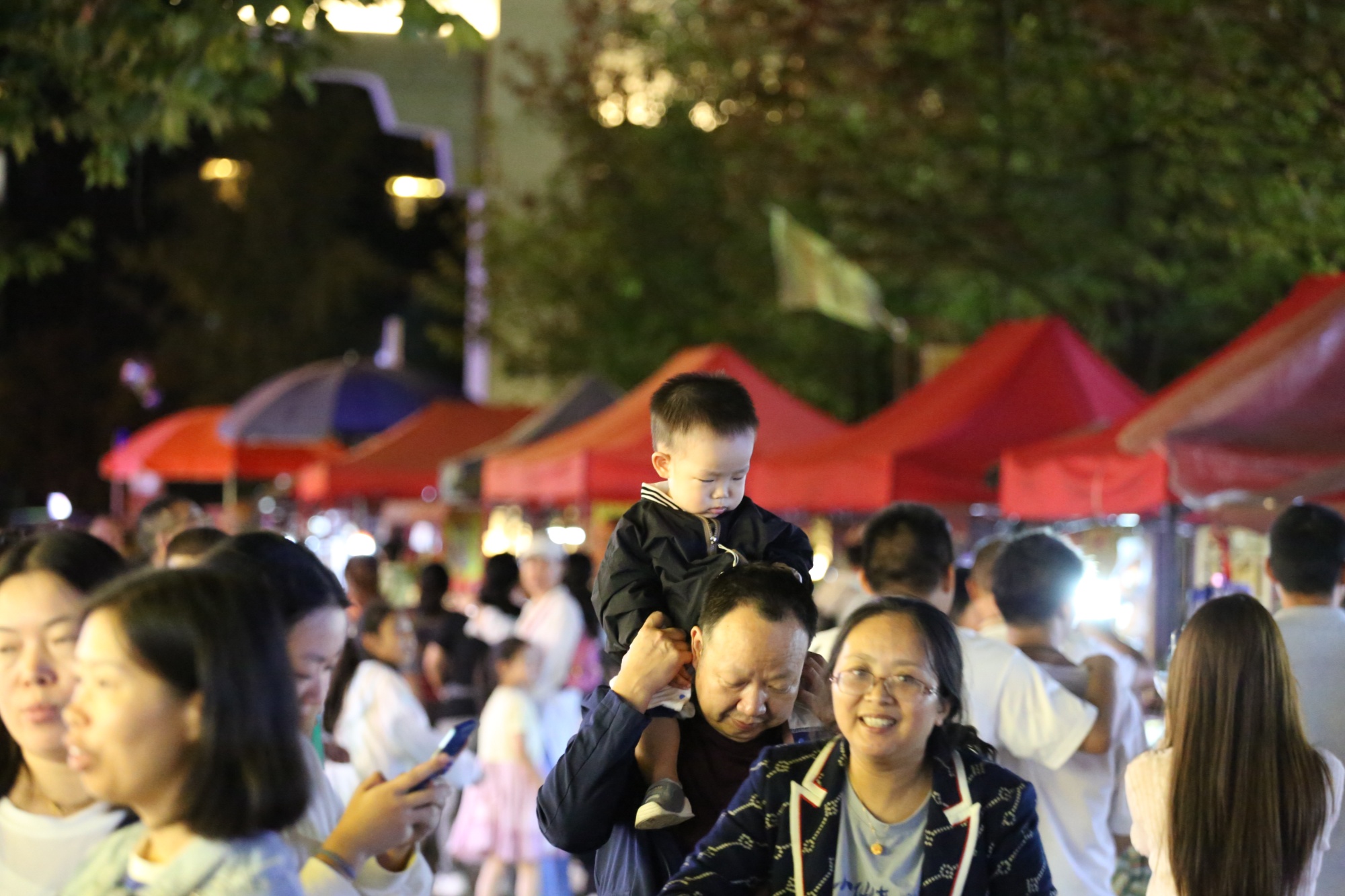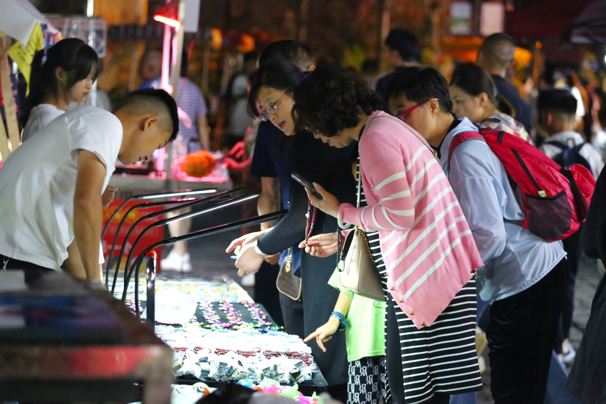 游客在六盘水市水城古镇夜市摊上购买小吃(赵桦摄)