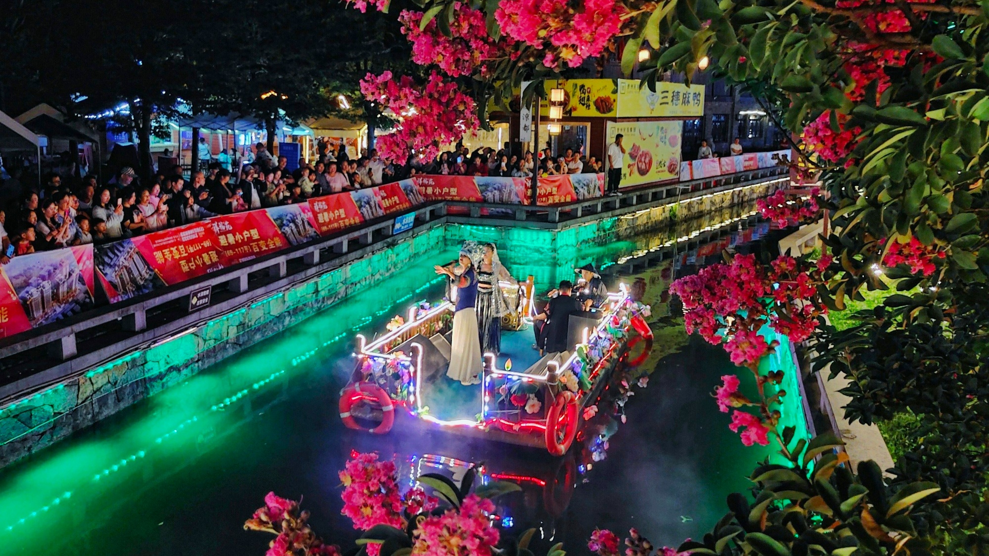 游客在六盘水市水城古镇观看文艺演出(赵桦摄)