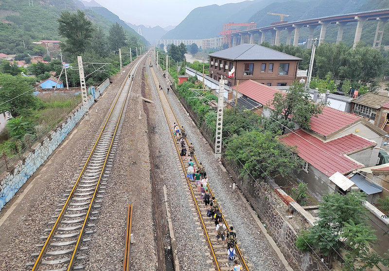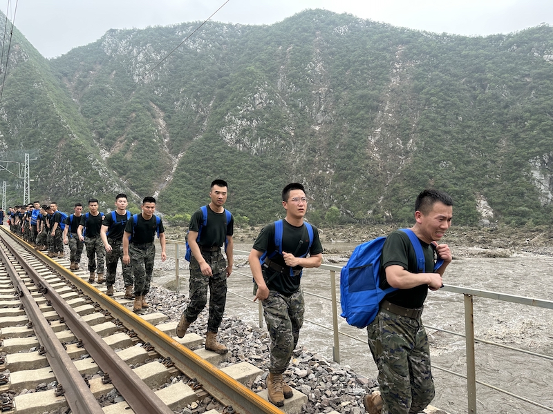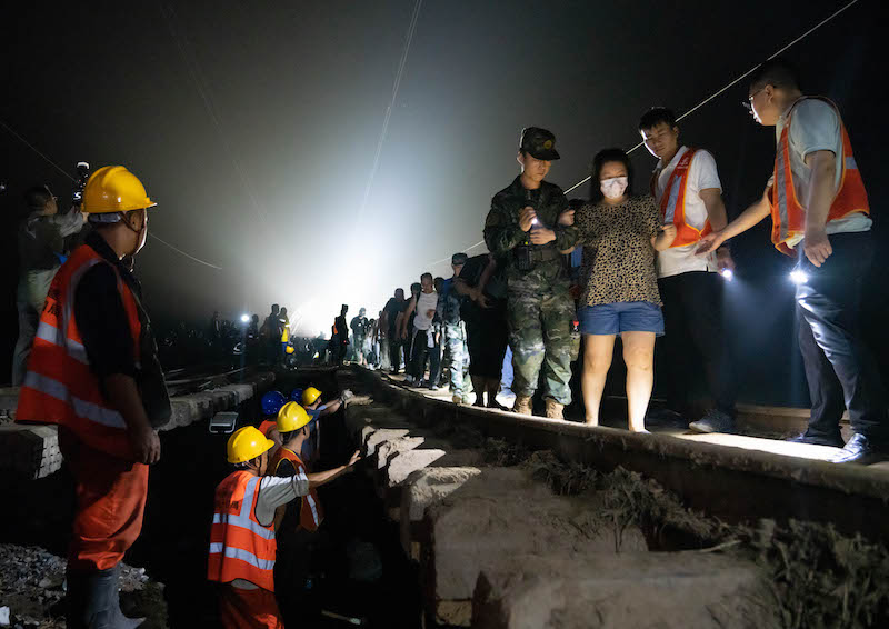 2023年8月2日,武警北京总队机动第三支队官兵帮助Z180次受困列车旅客离开。