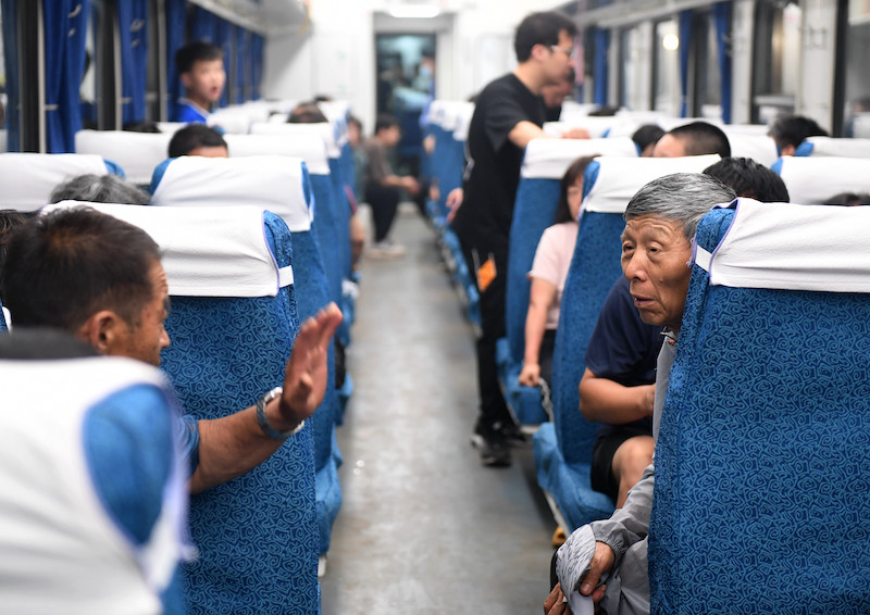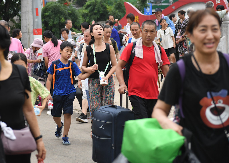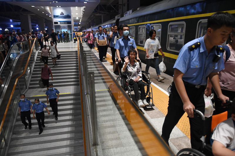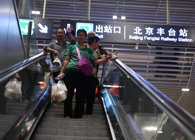 2023年8月3日,K396次、Z180次列车的滞留旅客到达北京丰台站。