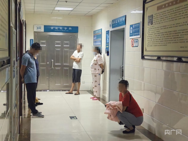 医院手术室外有伤者家属在等待(央广网记者刘博伦摄)
