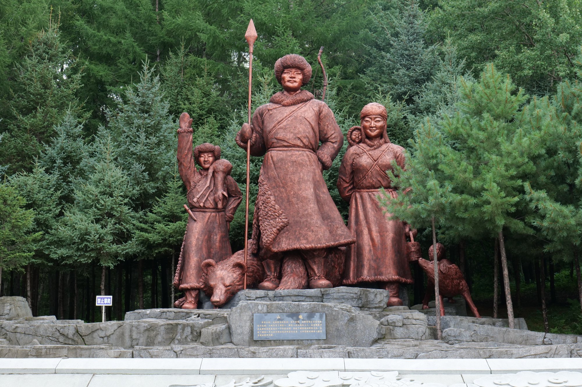 再现赫哲族狩猎文化的山魂雕塑(央广网发邵丽君摄)