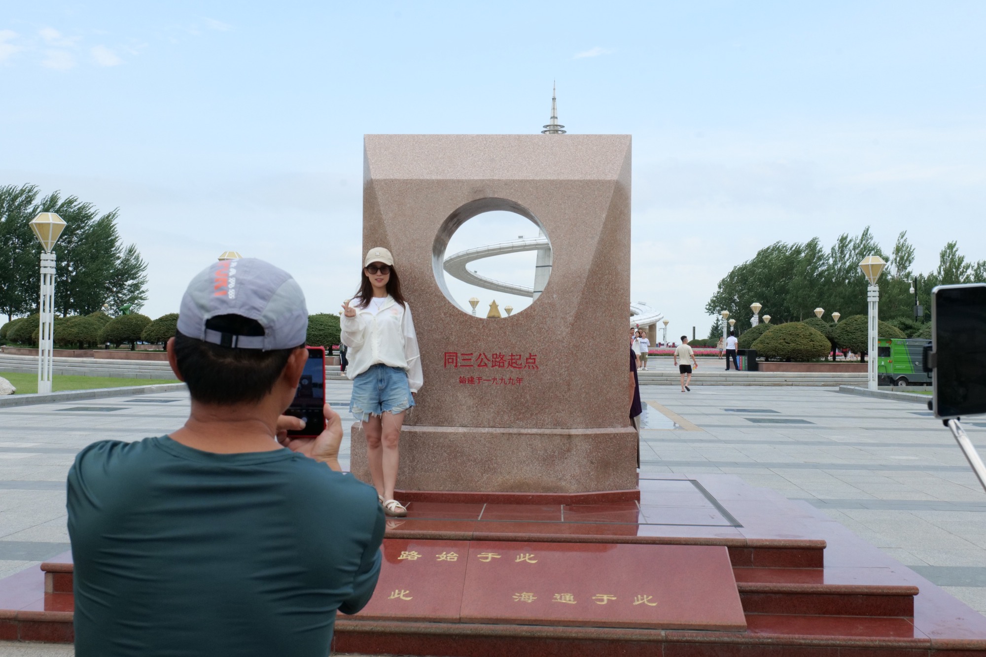 “打卡”起点纪念碑(央广网发邵丽君摄)