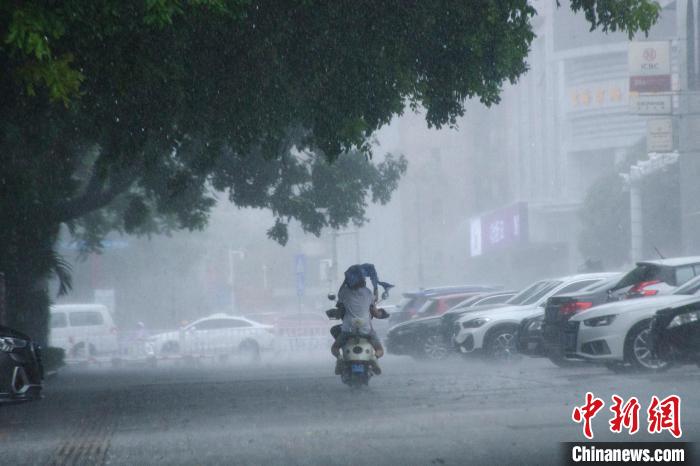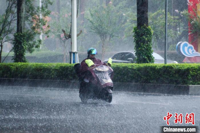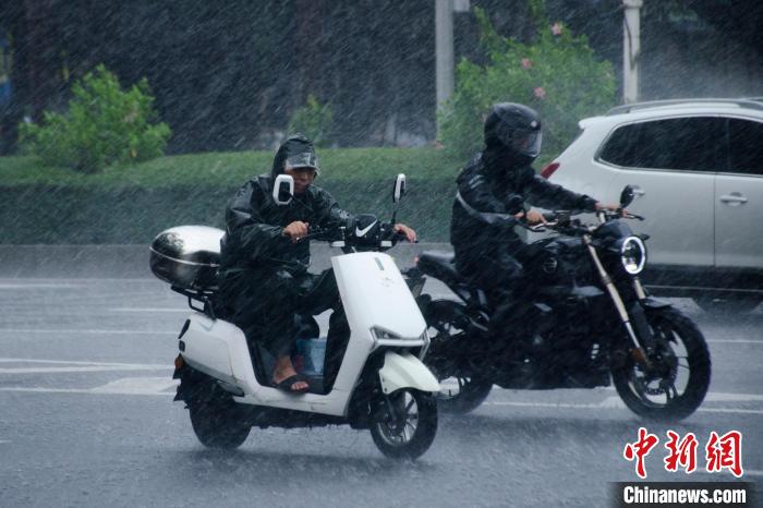 图为市民在雨中骑行。翟李强摄