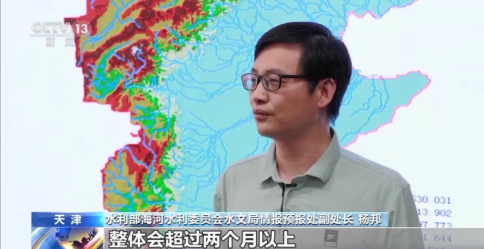 水利部海河水利委员会水文局情报预报处副处长杨邦:因为参考(海河流域)96年的洪水,我们初步估计,后期蓄滞洪区的排水整体会超过两个月以上。因为经过蓄滞洪区的调蓄,下游的河道的洪峰流量比较平稳,不会超过特别大的洪峰量级。总体来讲,洪水在河道行洪是安全可控的。