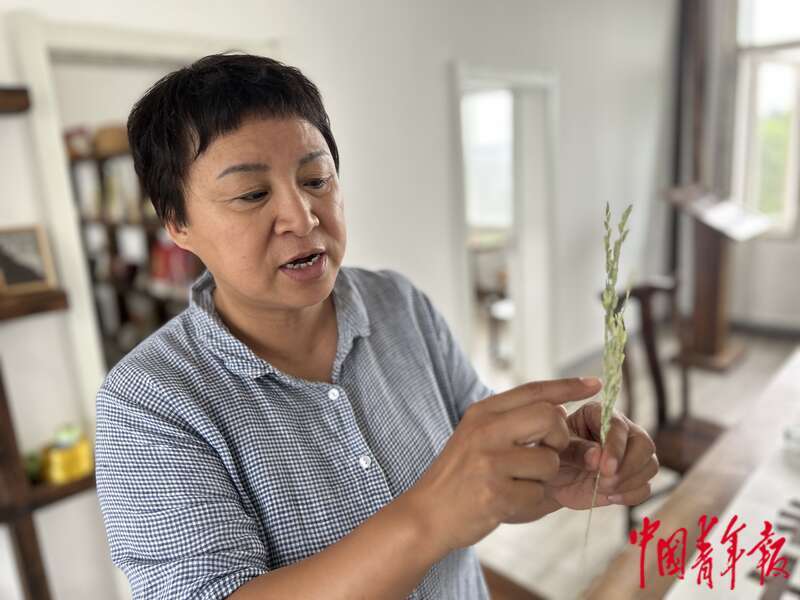 视频里连片的稻田透着勃勃生机,刚刚抽穗的稻苗身姿挺拔,翠绿翠绿的。虽然还未到灌浆期,凑近一闻却已经有了丝丝米香。刘晓莉顺手摘了一株回来,没想到第二天这片稻田就被浸在了水下。