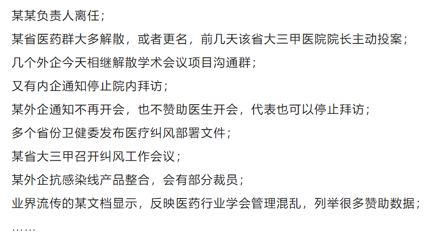 据业内人士介绍,解散群、放假、召回代表接受培训,已经成为药企应对目前风暴的三件套。