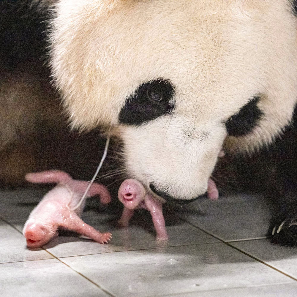 7月7日清晨,“爱宝”顺利在韩国爱宝乐园产下雌性双胞胎幼崽。通常来说,大熊猫妈妈诞下双胞胎的几率为40-50%。第二次当妈妈的爱宝,从交配、怀孕、分娩、生子,到养育孩子的各个过程,都显得十分成熟。