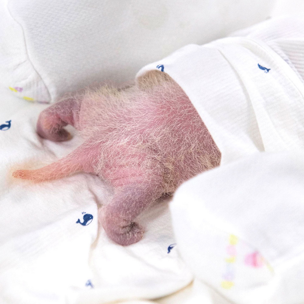 熊猫宝宝的绒毛越来越长,即将可以调节体温。