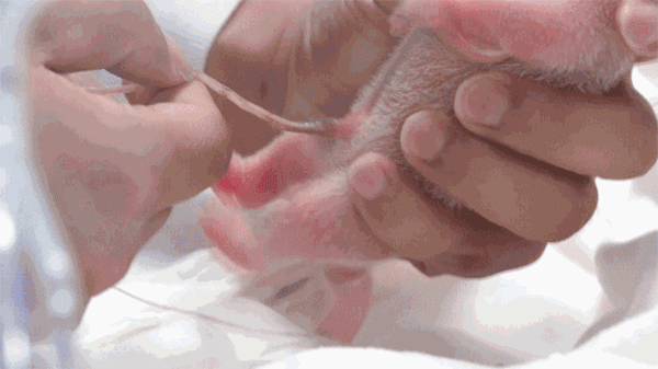 出生第20天时,姐姐的体重达到610克,保温箱的妹妹竟然比姐姐还重,有634克。这对双胞胎宝宝此时依然需要持续的照顾,妈妈爱宝、饲养员以及兽医每天都通宵达旦地照顾它们,十分辛苦。