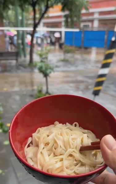 当晚,曲水和朋友在居委会的办公室凑合了一夜,而研学团的孩子们被安置在了社区的礼堂。当天下午五点多,赵强分到了一碗面条,后来在楼道里铺着报纸睡了一晚。“有个躲雨的地方就很好了。”