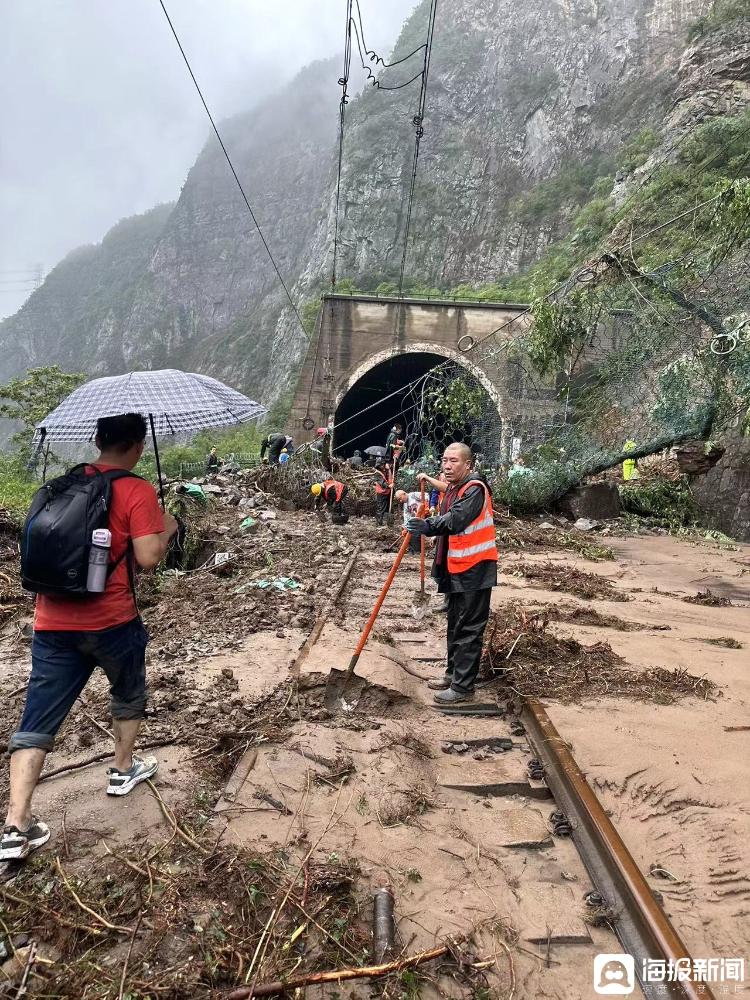 后来,大家开始渐渐从手机上得知,由于暴雨导致前方出现了塌方,丰沙线三家店至雁翅间线路采取临时封闭措施。