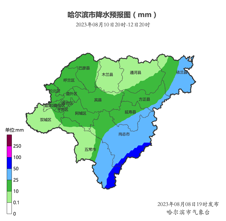 预计10日夜间至12日白天为“卡努”主要降水时段,主城区、呼兰、双城、阿城、巴彦、木兰、宾县、通河、依兰西部、方正西部、延寿西部、尚志西部、五常西部累计降水量在10~25毫米,五常东部、尚志东部、延寿东部、方正东部、依兰东部累计降水量在25~50毫米,其中五常东部、尚志东南部局地可达50~90毫米。降雨同时多短时强降水、雷暴大风、小冰雹等强对流天气,最大小时雨量30~50毫米,阵风7~8级,东南部局地9~10级。