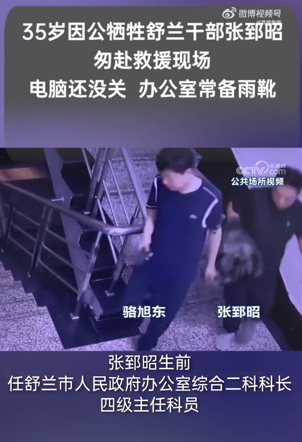 张郅昭生前任舒兰市人民政府办公室综合二科科长、四级主任科员,8月3日晚在组织解救被洪水围困职工群众时牺牲,年仅35岁。