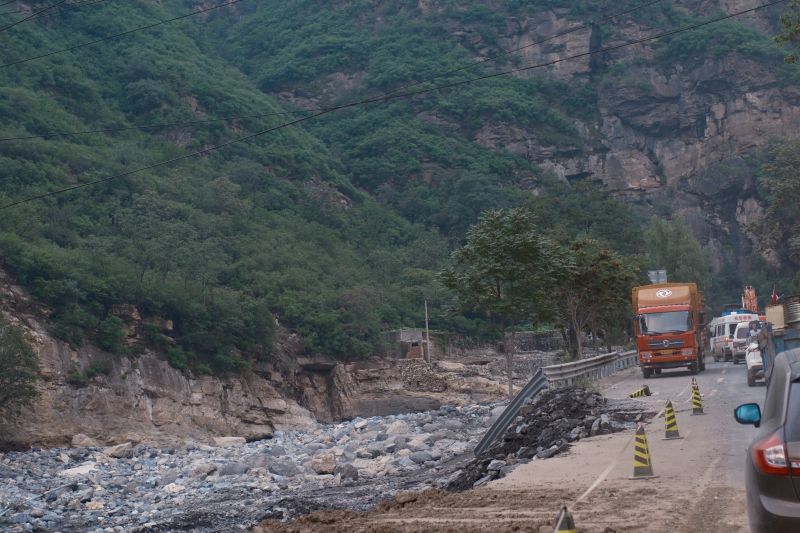 经过连日抢修,房山区108国道生命通道已于8月4日抢通。记者一路行驶,部分路况依然比较险峻,个别临时的绕行线路会有陡坡,道路以砂石堆砌为主,车子行驶在上面摇摇晃晃。截至记者发稿前,该路段应急救援车辆、人员可通过,出于安全考虑,社会车辆暂时不驶入。