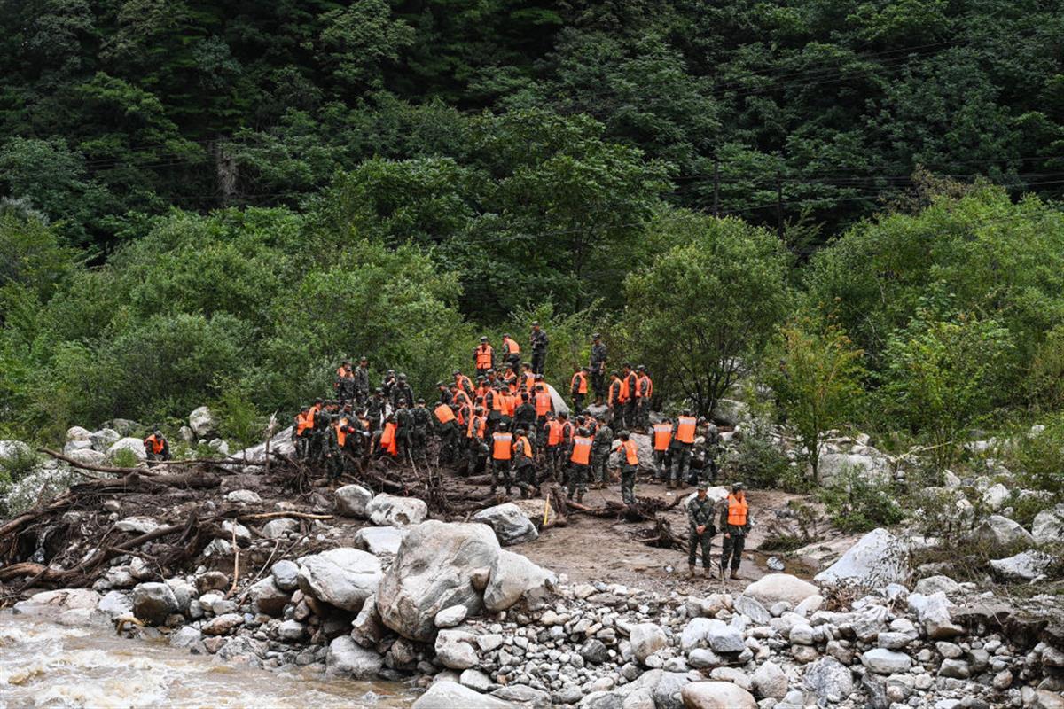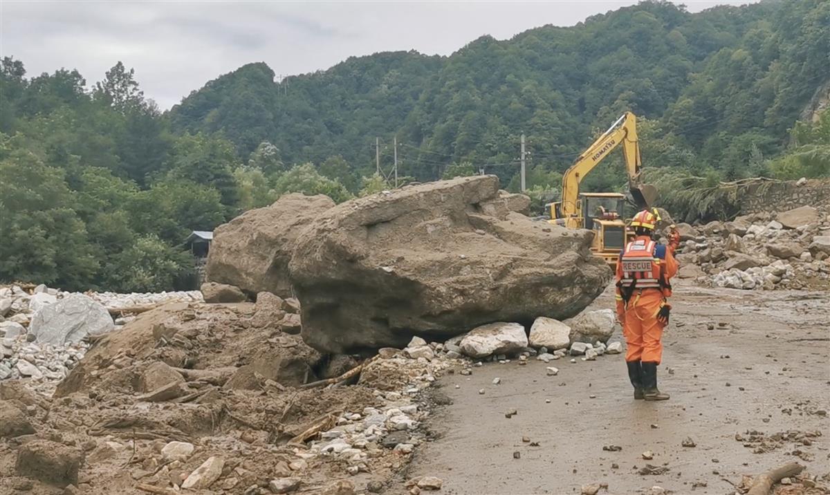 新华社此前报道称,河道旁的路基已经被洪水冲垮,有两间地处山谷地带的房屋被山洪和泥石流冲毁,其中一间房屋只残存两面砖墙,抢险救援人员正在清理被冲下山的泥浆和大石块。