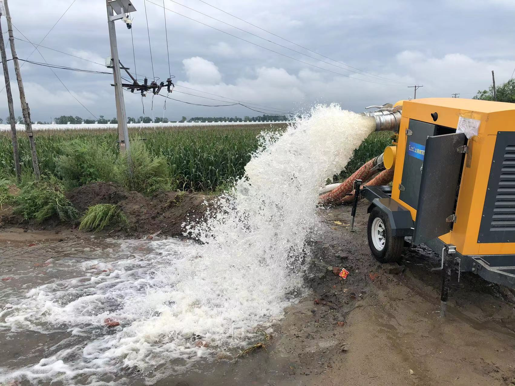 榆树市八号镇西胜村,水泵正在抽排玉米地里的积水