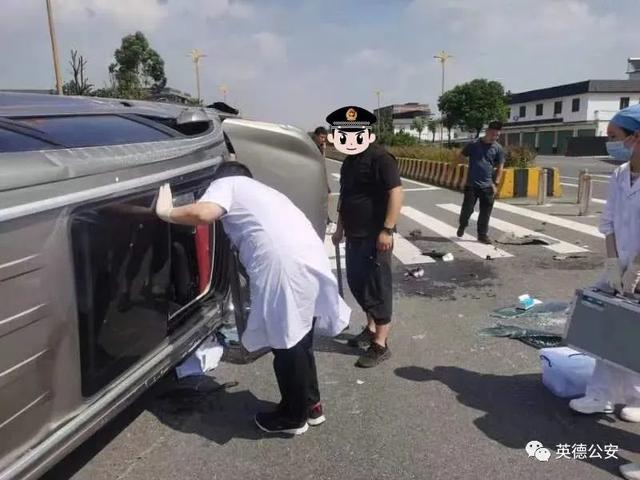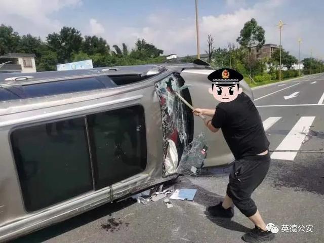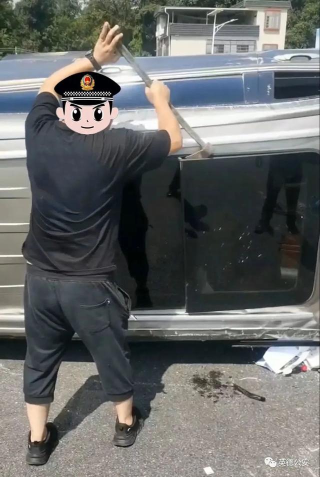 8月8日上午,清远英德刑侦大队民警唐伟聪、辅警曾远平驾驶车辆外出办公,9时50分许,二人行驶至京港澳高速某路段时,突遇一起小车侧翻的交通事故,车身损毁严重,车内有3人被困,情况十分危急。