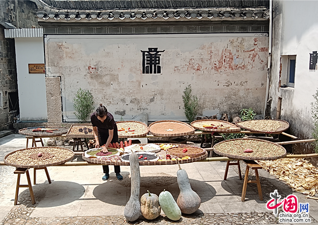 走进安徽省绩溪县家朋乡尚村古村落,映入眼帘的是一幅色彩斑斓的美丽画卷。村民们在房前檐下、窝旁路边的空地上支起架子,用竹匾盛放晾晒着自家田地里收获来的玉米、花生、豆子、辣椒等农作物,红橙黄绿、五颜六色,与古民居交相辉映,形成了独特而靓丽的美景。这就是尚村独特的风景线——“晒秋”,晒的是丰收的喜悦,晒出了浓浓的乡愁,晒的虽是朴实的农作物,却成了这个秋天吸引游客前来拍照打卡、体验农俗的亮点。