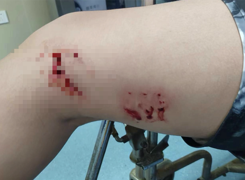 游客陈女士的儿子也被咬伤。陈女士告诉记者,事发时,11岁的儿子正戴着游泳圈浮在浅水区玩耍,“海水大概到我小腿的位置。”随后,陈女士的儿子感觉踩到了软软的东西,“好像有刺。”上岸后,陈女士注意到,儿子右腿大腿处有两处伤口。“两处伤口一共缝了20针。”