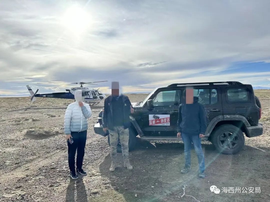 18时10分,在搜索飞行4个多小时后,飞行员发现了车辆被困于哈拉湖东侧海拔4300米的一片沼泽地。警用直升机安全降落,民警迅速查看并询问了七人的情况,其中两名女性、两名青少年有不同程度的高原反应。民警随即通过卫星电话向州局指挥中心报告了现场情况,并科学制定救援计划。轰鸣启动,低空慢飞,警用直升机在高海拔区域通过空中引导,将两台被困车辆转移至安全区域。18时50分,直升机再度启航,搭载四名身体出现不适症状的游客,第一时间送往德令哈市。天峻县公安局、德令哈市公安局增援警力,以及应急管理部门工作人员做好救援工作的地面接力,共同引导、协助游客,于23时许将两台车辆安全护送驶抵德令哈市。出现高反症状的游客,经医护处理、休息休整,身体状态已恢复。